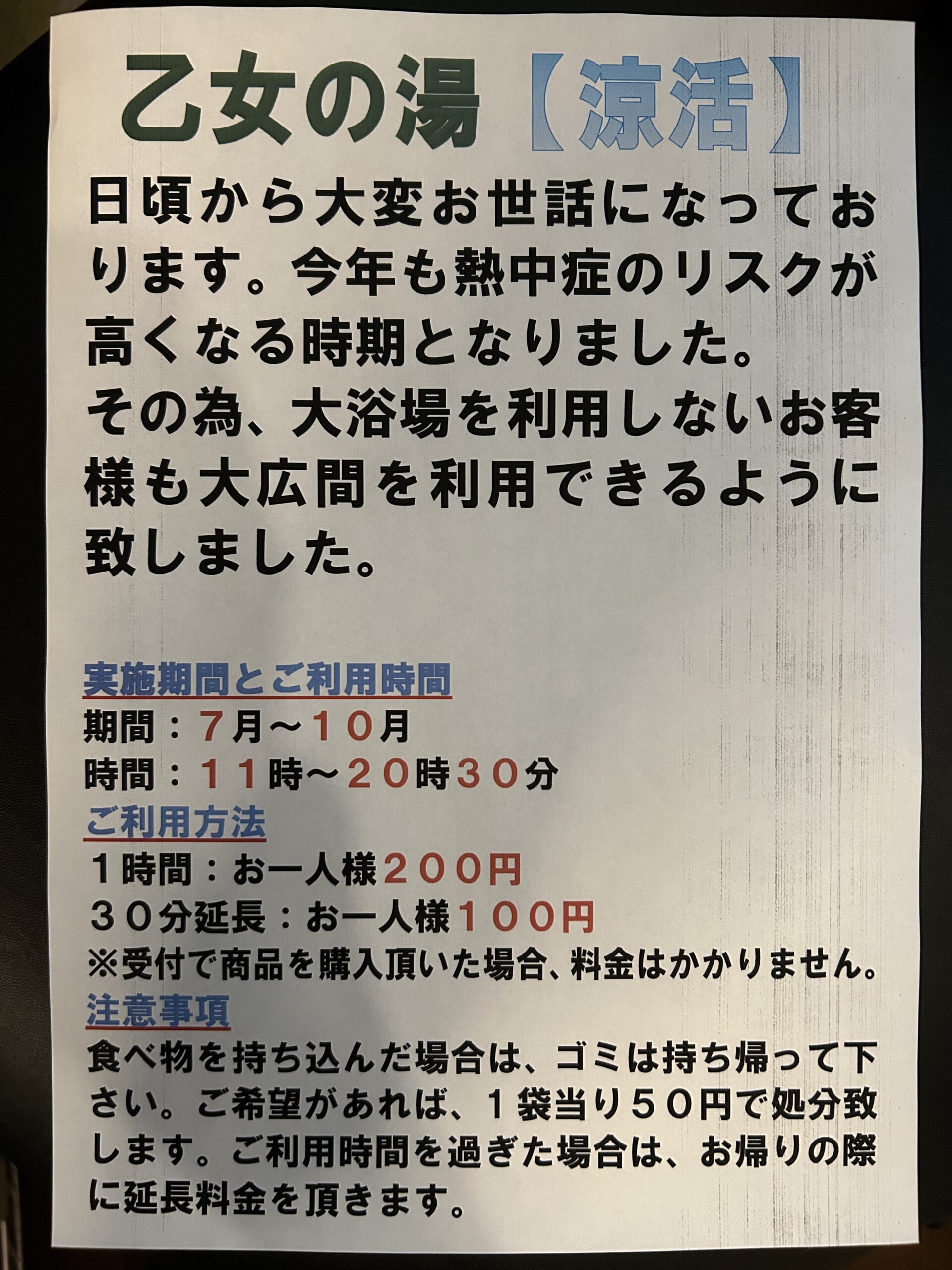 乙女の湯 涼活始めます‼︎